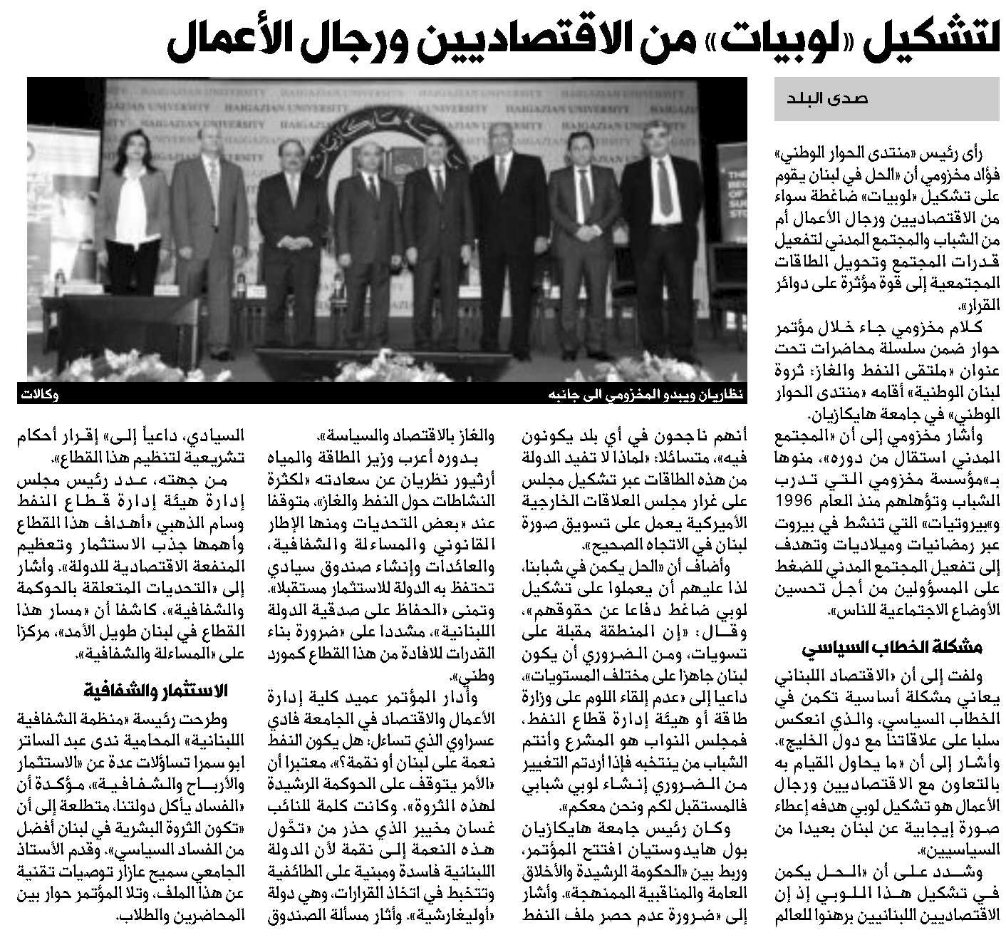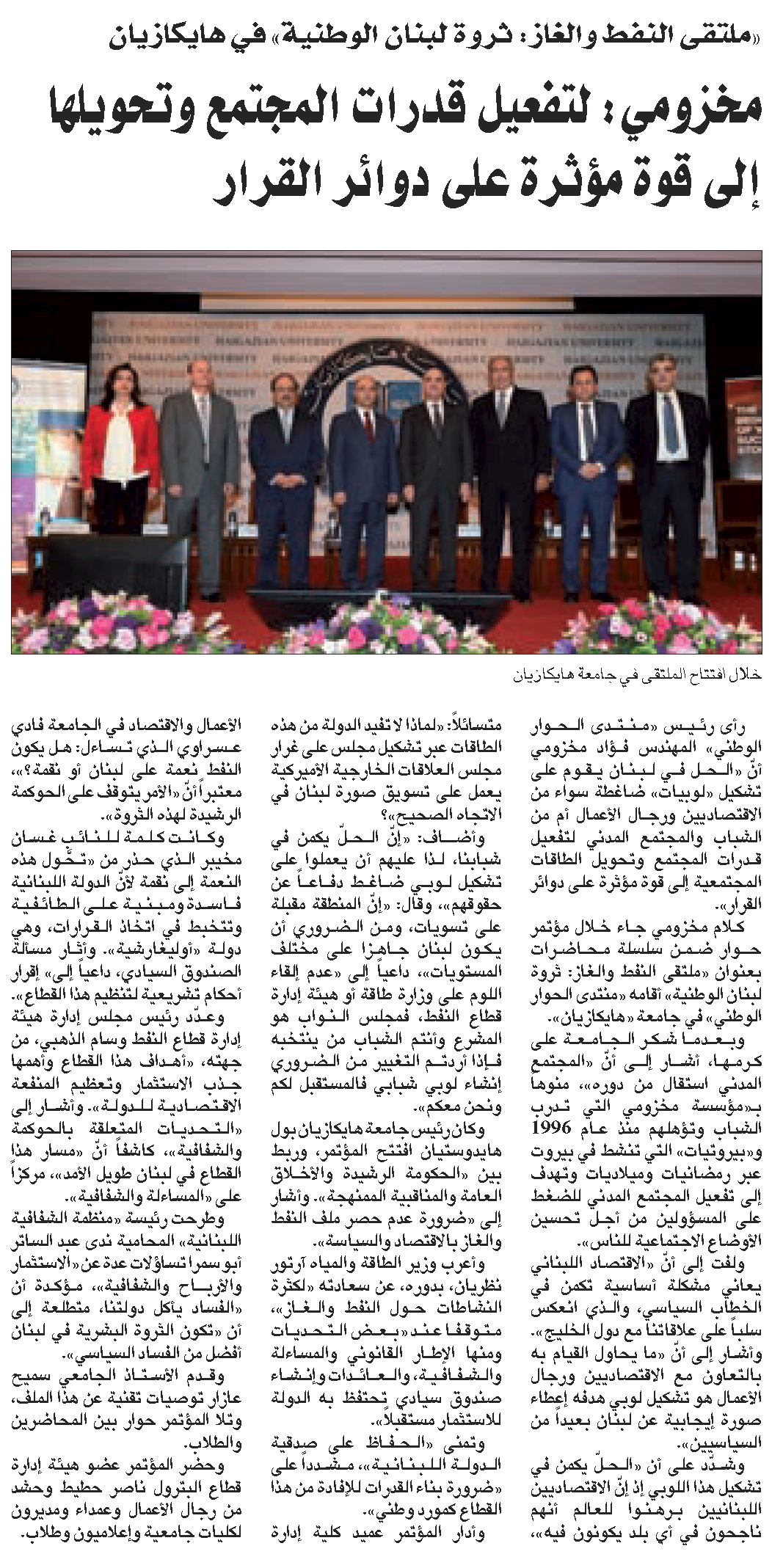The second Oil and Gas event for 2016 was held at Haigazian University on “How to ensure the highest R.O.I. through good Governance?”.